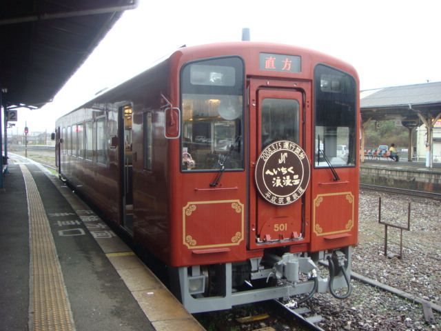 03/19/18:16 へいちく浪漫号・福岡1周の旅?今日は、お仕事お休みだったので、先日から計画していた福岡県の筑豊地方のムービー撮影にでかけてきました。でも・・・朝から雨!どうしようかなって思ったけど、オウチにいてもつまらないので、乗り鉄することにしました。 写真は平成筑豊鉄道の500型、3月15日から運行を開始したピカピカの車両です。車内もとても座り心地の良い転換クロスになっていてよかったです。 ところで今日は、博多から福北ゆたか線→後藤寺線→日田彦山線→平成筑豊鉄道伊田線→福北ゆたか線→鹿児島本線と回ったんだけど、行きがけの後藤寺線で1両編成のキハ31形は、太宰府市内の小学生で満員でした。みんな「福岡県1周」ってお手製のパンフレットを握り締めてて、なんだか小学校のころに社会見学でポートライナーに乗ってポートピアに行ったことを思い出して懐かしくなりました。 その小学生たちとも田川後藤寺駅でお別れして、私は日田彦山線の新駅歓遊舎ひこさん駅へ向かいました。小学生たちは、これからどこに行くのだろうと思いながら、その後、小学生たちのことも忘れ、私は田川伊田から直方へ、そして折尾に向かったのです。 折尾から、鹿児島本線の快速に乗り換えると、また車内には子供たちのにぎやかな声が・・・「およ~、あんたら、さっきの小学生やんか!」とびっくり、私が、直方経由で折尾に向かってる間、きっと、小学生たちは日田彦山線で城野・西小倉経由で鹿児島本線の乗り換えたのでしょう。 うわ~、この子たちも乗り鉄やん、今日の旅で、また鉄ちゃん・鉄子さんのタマゴが増えたらうれしいなっ!って思った私でした。