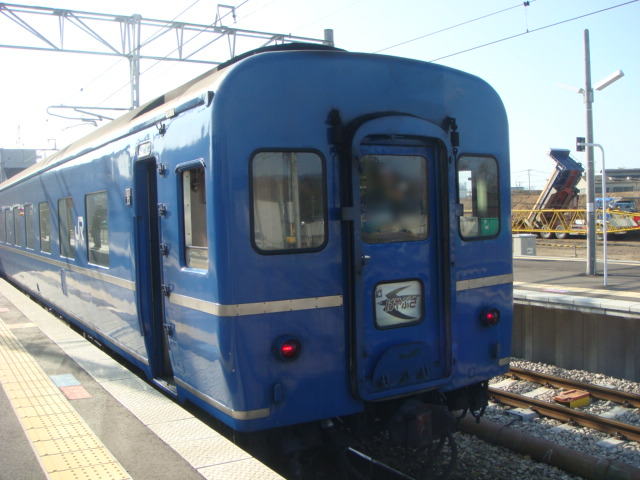 01/14/21:17 はやぶさムービー大失敗今日は、お昼寝特急?寝台特急「はやぶさ」の立席特急券を使って博多駅から久留米駅までムービー撮影をしてきました。でも、バッテリーの入れ間違いをしてしまって、残量の少ないバッテリーを入れて撮影開始しちゃうというドジを踏み見事に失敗!鳥栖発車後に撮影は途切れてしまいました。 まあ、もう1回撮りなおししたらいいかなって思ったりもするんだけど、けっこう車掌さんの了解を得るのに苦労して撮影したので、またお願いして撮影させてもらうのも気が重いです。 と言うのも、今回は最後尾の貫通路窓から撮影したんですが、貫通路の両側には車掌室とドア開閉装置のある部屋があるのです。そのため車掌さんがちょこちょこ出入りするので、私の存在は、とても邪魔になっちゃいます。博多駅で乗車するときに車掌さんに「貫通路で久留米まで撮影してもいいですか?」って聞いたら、しばらくほかの車掌さんと相談してましたが、「久留米までなら、まあいいでしょう」と何とか了解をいただきました。 貫通路を独占できて「余裕で撮影できるじゃん」て思っていたのですが、いざ撮影を始めてみると、車掌さんが出入りするたびに身体を縮めなくちゃなんないし、ホームでは鉄道ファンがカメラ構えてるから、私が写っちゃあまずいだろって思ってしゃがんだりと、ただでさえ最近メタボ気味の身体はクタクタです。 で、結局、鳥栖駅発車後にバッテリーが切れたのに気づかないまましばらくカメラを握り締め、気が付いてバッテリーを入れ替えたときにはすでに久留米停車前でした。 ぐったりして久留米で「はやぶさ」を降りてテールを撮影しようとしたら、なんと、もう、ほかの鉄道ファンが私が撮影していた貫通路で撮影をはじめていました。「なんじゃあ!車掌さんにアタマ下げてまで撮影した私は何だったのよお(泣)」