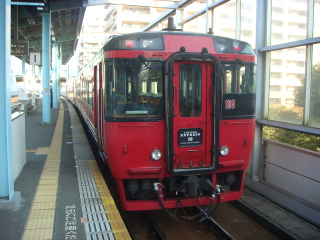 10/21/23:52 唐津駅に特急が今日は、唐津・伊万里方面にムービー撮影に行ってきました。 帰りの唐津駅で珍しく特急DCが!唐津線も筑肥線も特急なんて走ってないよね???って思ったら、佐賀キャンペーン号という観光臨時特急でした。 唐津と佐賀・鳥栖を1日2往復くらいしてるみたいです。ヘッドマークは専用じゃあないけど、ちゃんとオリジナルの方向幕が付いてました。 ちゃんとCAも乗務してるんだけど乗客は?2両編成の車内に二人でした。発車する頃にはもう少し多くなるかなっと思ったけど、そのままの乗客数で佐賀方面に出発しました。 でもこの車両、前面展望も開けてるし、唐津線の特急なんてめったにないからムービー撮影する価値はあるかも・・・と最近ムービーにはまっている私は思ったのでした。 今日は、筑肥線の非電化区間である伊万里まで行ったのですが、この区間の筑肥線は千葉県の浦安市に住んでいたころに、お仕事で行ったことがありました。その頃は、なんか日本の西端まできたような気がして、よくこんなとこまできたわあって思ったのを覚えています。メチャ遠くて、正直なところ外国に来たような感覚がしたのを覚えてます。 でも、福岡に住んでいる今は、オウチから約2時間半、「う~ん、引っ越しするって良いこともあるのね」なんて思ったのでした。