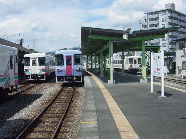 07/01/18:32 Fe含有量99%今日は、福岡県にある第3セクターの甘木鉄道に乗ってきました。旧国鉄甘木線だっけ?初乗車だったので、興味津々、車窓に釘付けでした。各駅訪問っていうわけじゃあなかったので、どちらかというと乗り鉄ってことでしょうか。終点の甘木駅は写真のようにたくさんの車両がとまっていました。よくある赤字第3セクターの寂れた終着駅とは違い、とても賑やかな感じ、その上、駅舎も風情がある昭和10年代の建物で立派、きっと経営は苦しいんだろうけど、がんばってるなあと思いました。 そんな甘木駅で構内に流れるオルゴールをのんびり聴いていたら、友人から電話がかかってきました。「なんやあ」と思って電話にでると、いきなり「三宮行く?」・・・私はなんで、いきなり三宮???って思ったんだけど、よく考えたら、ショップのバーゲンが始まってるのよねえ、私は、そんなことも忘れて鉄に浸りきっていたのでした。 私って、いつのまにか、「脳味噌、ファッションより鉄道に支配されているんやわと実感」、ちょっとオンナ捨ててるかなと思いつつ、「来週の土日でいいじゃん」とあっさりお断り(笑)、そして再び、帰りの車内は進行方向左側に座って、「大刀洗駅からの引込線廃線跡と、旧筑後小郡駅の痕跡をカメラに収めなきゃ」とふたたび鉄に没頭したのでした。