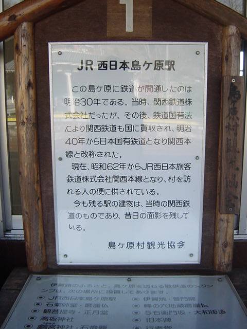 08/19/10:24 どっちがホント??? 関西本線島ヶ原駅三重県にある関西本線の島ヶ原駅は、国有化前の関西鉄道当時、明治30年の開業です。駅舎の方は、駅舎の出入口に取り付けられた財産標によると、明治40年に国有化されたあと、大正10年の建築となっています。
